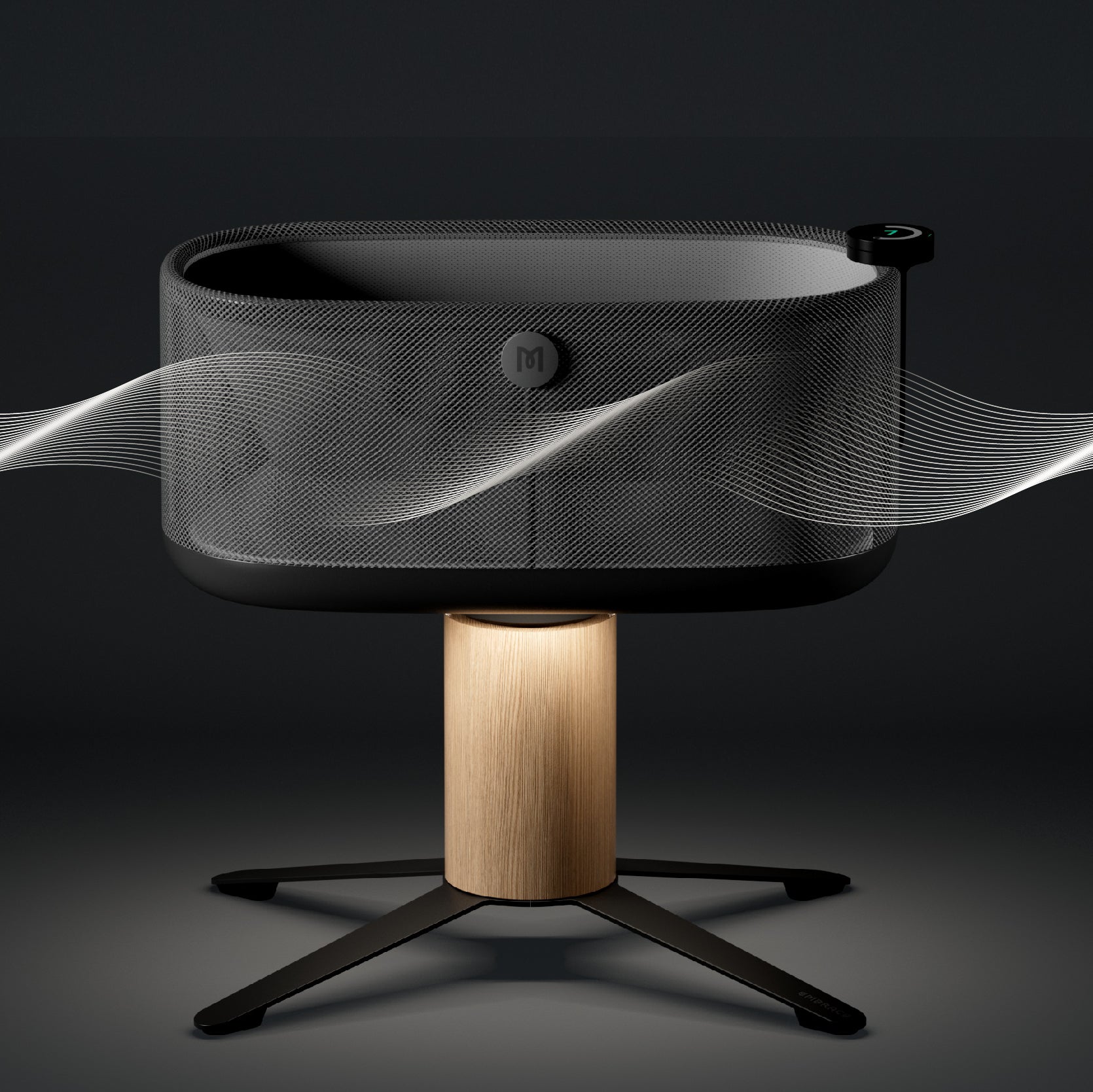 The EcoWomb Sound system replicates soft, soothing sounds from the womb, providing a calming auditory environment that helps reduce stress and enhance sleep quality for both baby and parents.